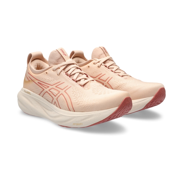 Nýr einstaklega mjúkur GEL-NIMBUS™ 25. Skórinn lætur þig líða eins og þú sér að hlaupa og lenda á skýi. Skórinn er hlutlaus (e. Nautral) en hann er mikið endurbættur með nýjum efnum sem skapa mýkri og sléttari hlaupupplifun. Mjúkt efni umvefur fótinn þinn á þægilegan hátt og veitir háþróaða öndun. Tungubygging veitir betri sveigjanleika og nær um ökklann fyrir meiri þægindi og tilfinningu. Með því að bæta við meiri FF BLAST™ PLUS púða og nota nýju PureGEL™ tækni Asics gefur skórinn léttari og mýkri dempunarupplifun.