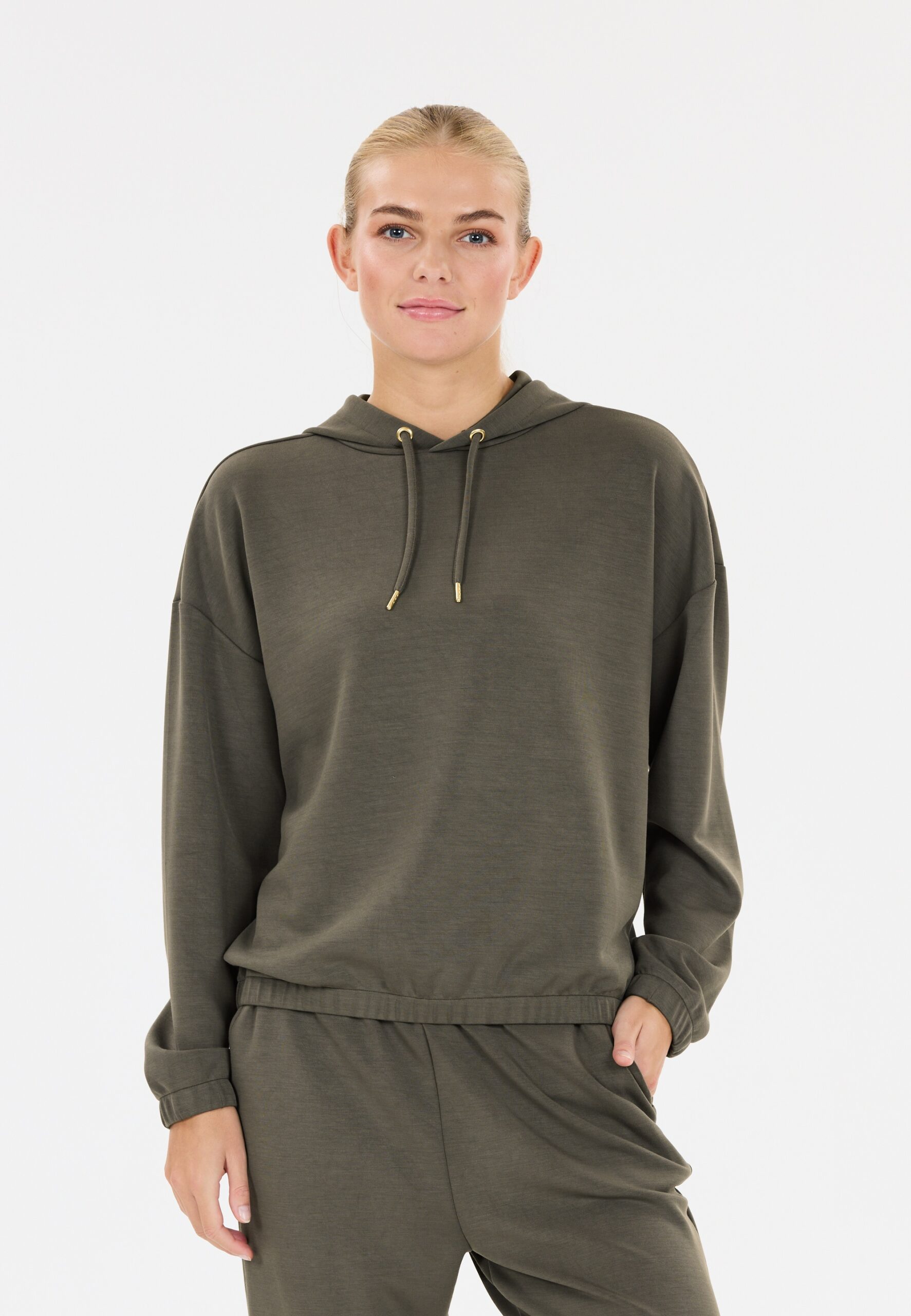 Hey! Here is the new NAMIER W Hoody hooded sweatshirt for women by ATHLECIA from Denmark. It scores with a hip design from Scandinavia and great quality. The high modal content gives the hoodie a super soft touch and a high level of comfort. Modal is naturally breathable and ensures a comfortable climate in everyday life and during sport. The large-format look, gold-look details and the large hood underline your trendy look. By the way: there are also matching AOMA tracksuit pants from ATHLECIA to go with this hoodie! Material: 51%POLYESTER, 44%MODAL, 5% ELASTHANE