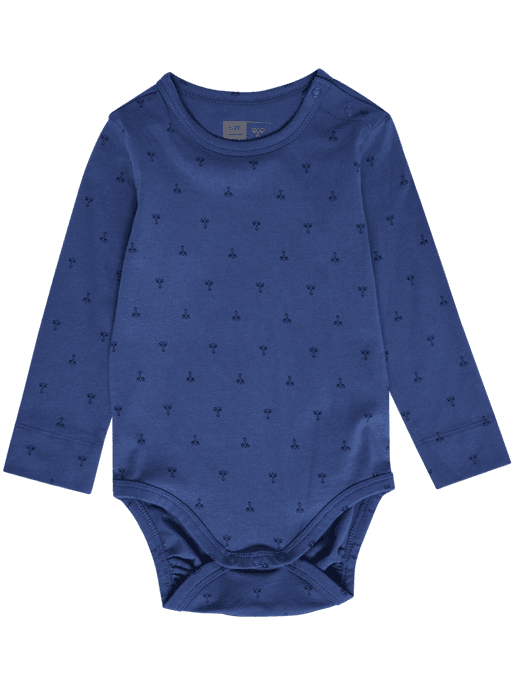 Perfect for wriggling and moving, the hmlBEESY BODY L/S is made in an organic cotton jersey fabric which provides great flexibility and breathability and boasts STANDARD 100 by OEKO-TEX® certification, which means that it has been produced without any harmful substances. An all-over print features on this hummel all-in-one babygrow and press-poppers sit on the shoulder and bottom for an easy change.