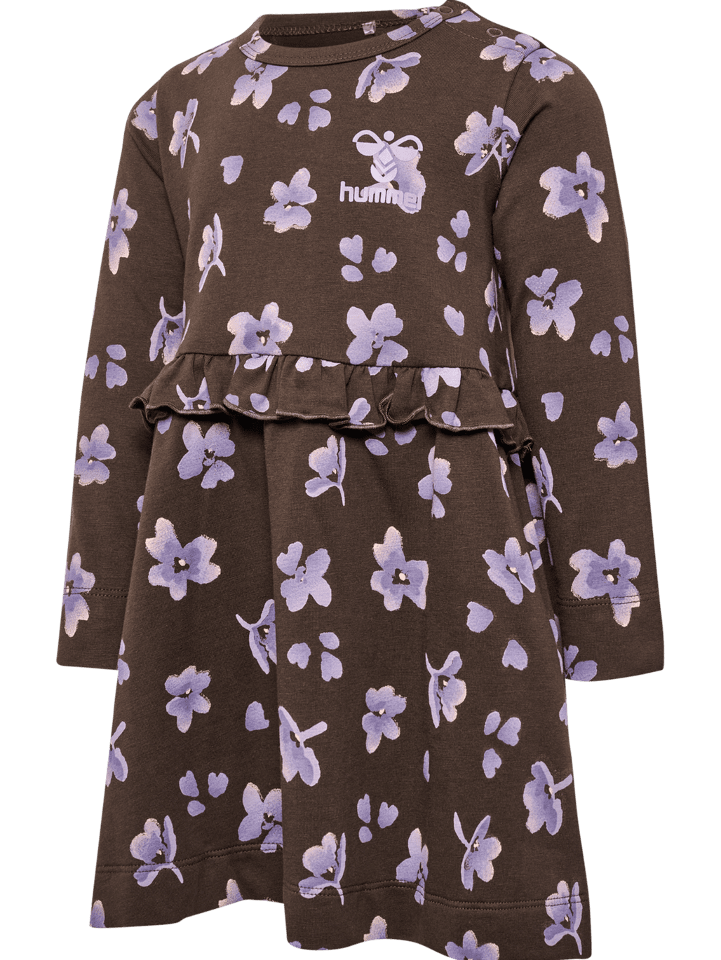 The hmlGUG DRESS L/S is made from a stretch jersey fabric comprised of organic cotton, offering a soft and comfortable piece for your little one. It features press button fastening at the shoulder for quick changes. The design includes a printed logo at the chest and an all-over flowery print. It features an all-over flowery print with a printed logo at the chest. This is a STANDARD 100 by OEKO-TEX® certified silhouette that has been thoroughly tested and contains no harmful substances.