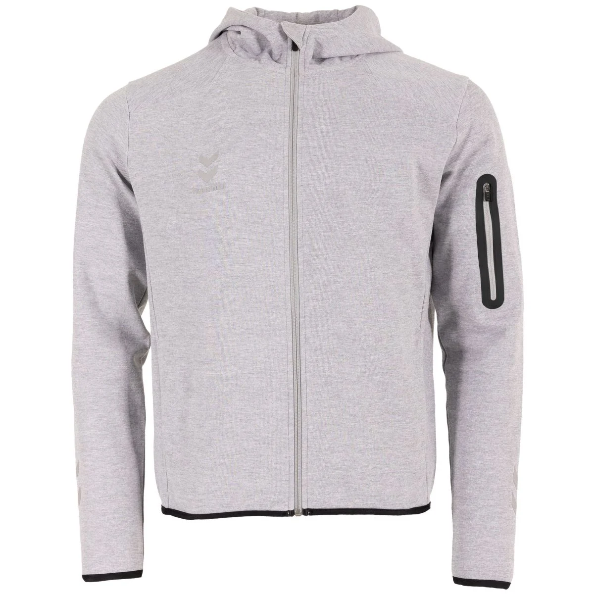 The Ground TECH Hooded Full Zip Sweat Top is comfortable and made from a mix of cotton, polyester and elastane. There are pockets on the front and on the sleeve that can be closed with a zipper. The hummel logos are located on the chest and forearms. The hem and cuffs are finished with an elastic band. This makes it fit nicely and you stay nice and warm. With ZIP POCKETS 🙂 .