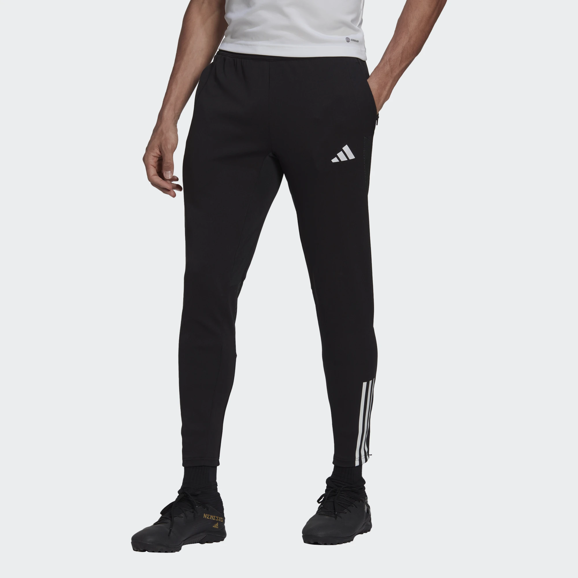 When the weather calls for a little more than shorts, hit the training ground at peak form in these adidas football pants. They’re made with a snug fit and stretchy fabric that moves with you when you run or change directions. AEROREADY keeps you dry through warmups and those laps around the pitch. Made with 100% recycled materials, this product represents just one of our solutions to help end plastic waste.