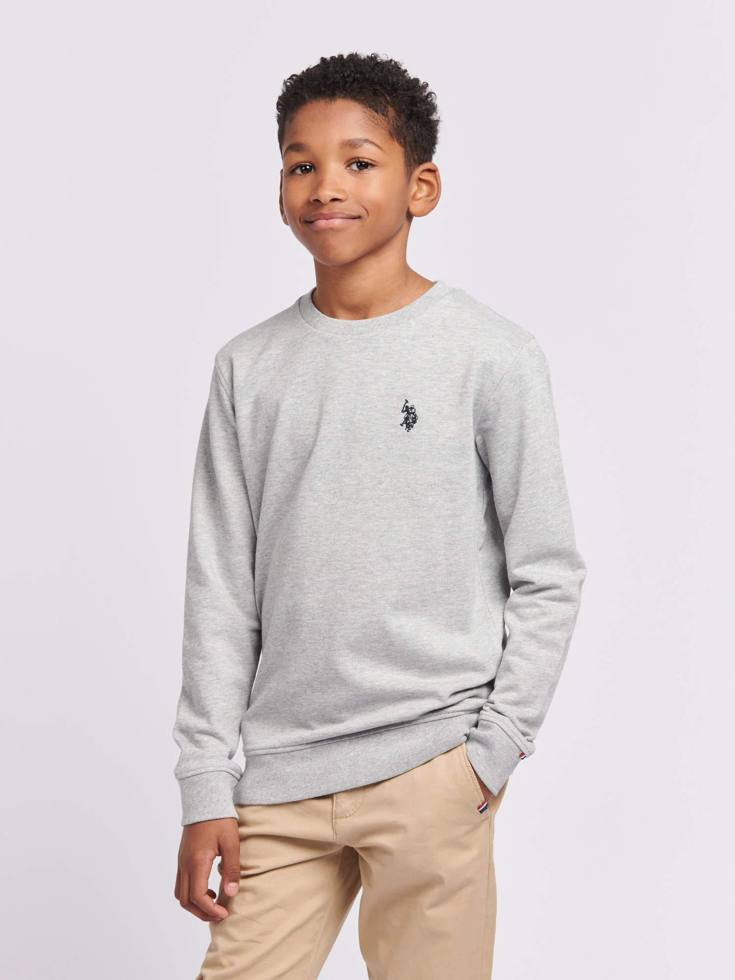 A wardrobe essential, the U.S. Polo Assn. Boys Double Horsemen Sweatshirt is a comfortable and breathable everyday basic crafted in a soft and smooth loopback cotton blend. This classic style is perfect to wear all year round as a standalone piece, or as part of a considered, layered look. Complete with a crew neckline, branded tab on the cuff, and the renowned double Horsemen logo embroidered on the left chest for the USPA stamp of authenticity.